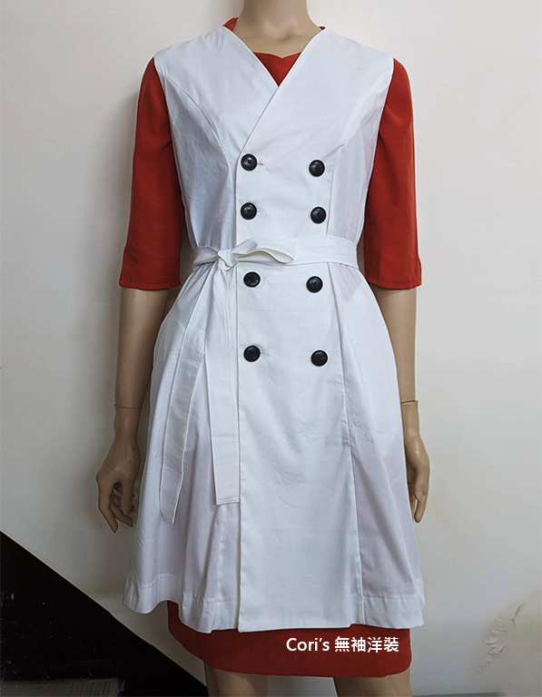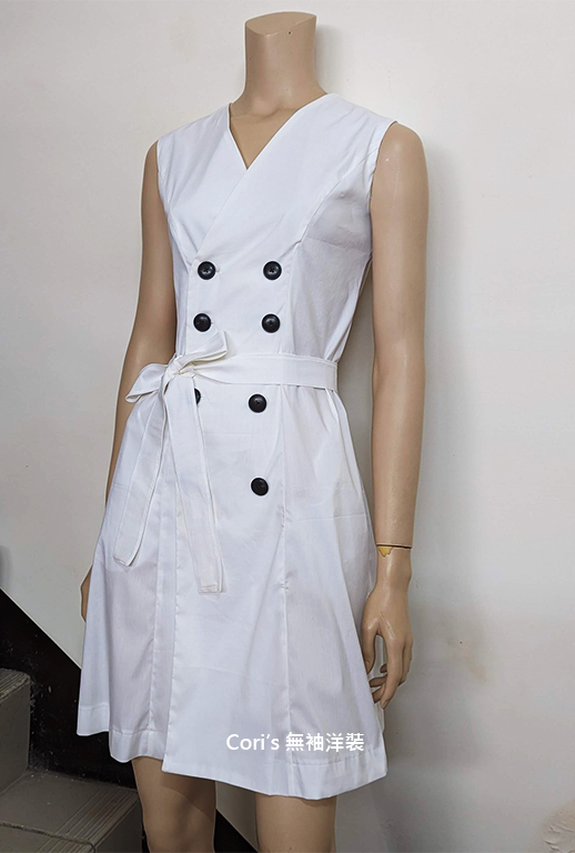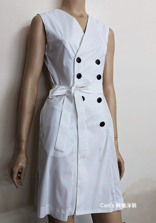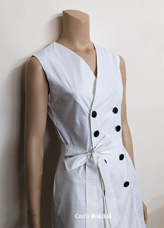 剛完成的無袖洋裝,是要夠的領低,才能有好看的領口線條,