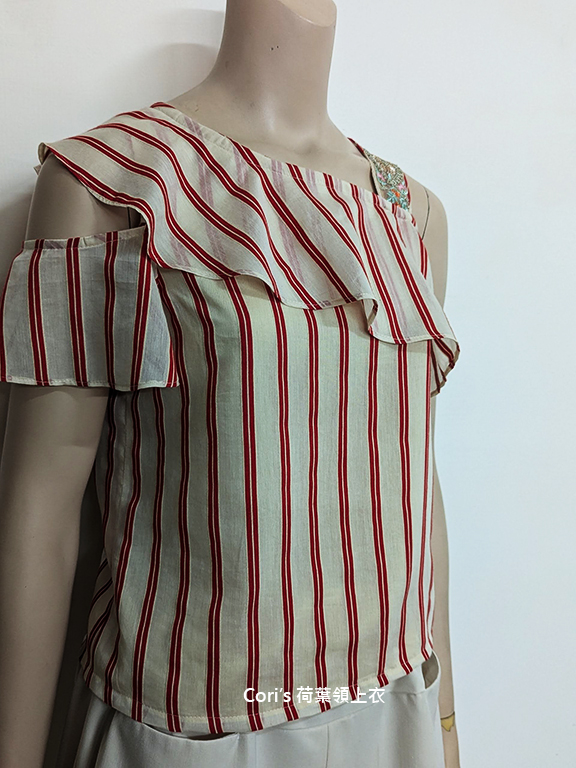 橫條的棉質布,呈現荷葉的波浪紋路,