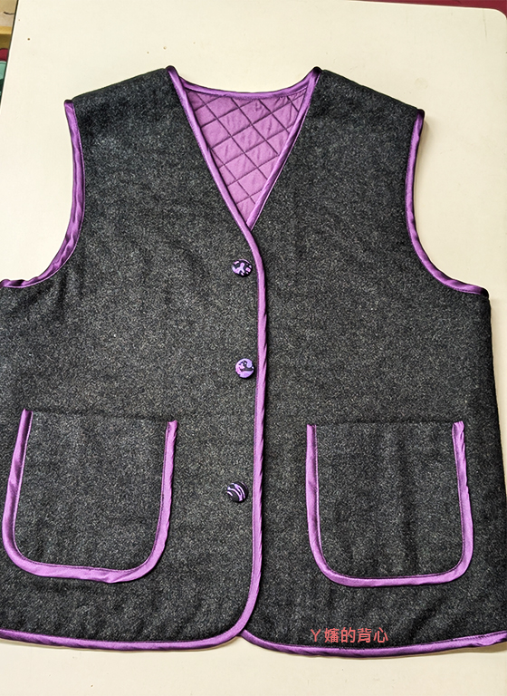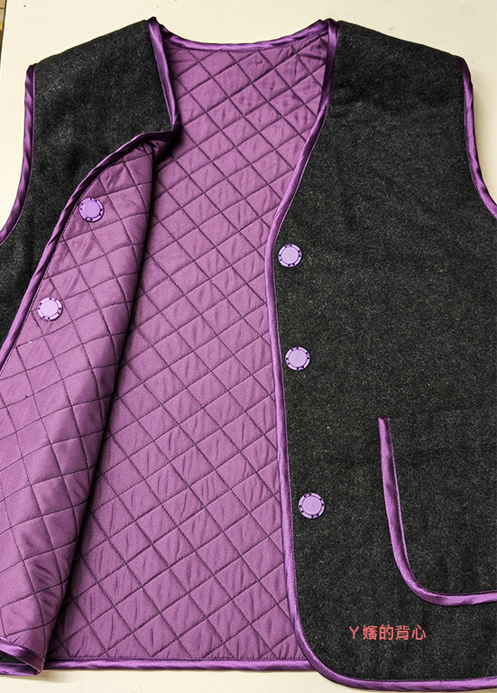 釦子是我用蠟染布,特別挑了黑和紫的布做的包釦,是不是很搭呢!